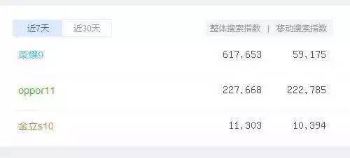 ▼近期三家國產(chǎn)手機(jī)發(fā)布會百度指數(shù)對比